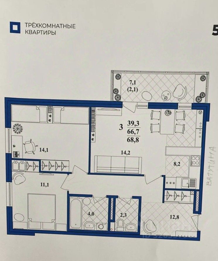Продается евротрёшка 67,7 кв.м в новом доме 2023 года постройки. Планировка: две комнаты и большая кухня-студия, светлая и функциональная. Отлично подходит для семьи. Квартира полностью подготовлена под ремонт: вы сможете выбрать стиль под себя и сделать интерьер именно по своему вкусу. В доме реализованы современные системы безопасности: видеонаблюдение на территории и в подъезде, домофон через приложение. В ближайшее время запланировано ограждение территории - дополнительный уровень комфорта и уюта. Парковка: есть подземная парковка и открытая парковка рядом с домом, а также кладовки в первом корпусе (часто продаются отдельно).