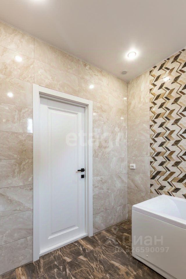 В доме уже выполнена отделка: - керамогранит на полу в прихожей, гостиной и котельной. - ламинат в спальнях - декоративные обои и под подкраску - кафельная плитка и сантехника в трех СУ - розетки, включатели - натяжной потолок