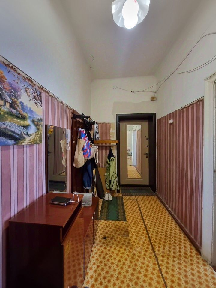Описaниe квартиры - Адрес: улица Горького, дом 21 (5-й этаж) - Площадь: общая 75 кв.м. - Комнаты: три изолированные комнаты площадью примерно 18+16+14 метров каждая - Санузел: разд., - Кухня: большая, удобная планировка - Балкон: имеется - Потолки: высокие, типичные для сталинских домов (около 33,2 метра) - Состояние жилья: требует обновления интерьера