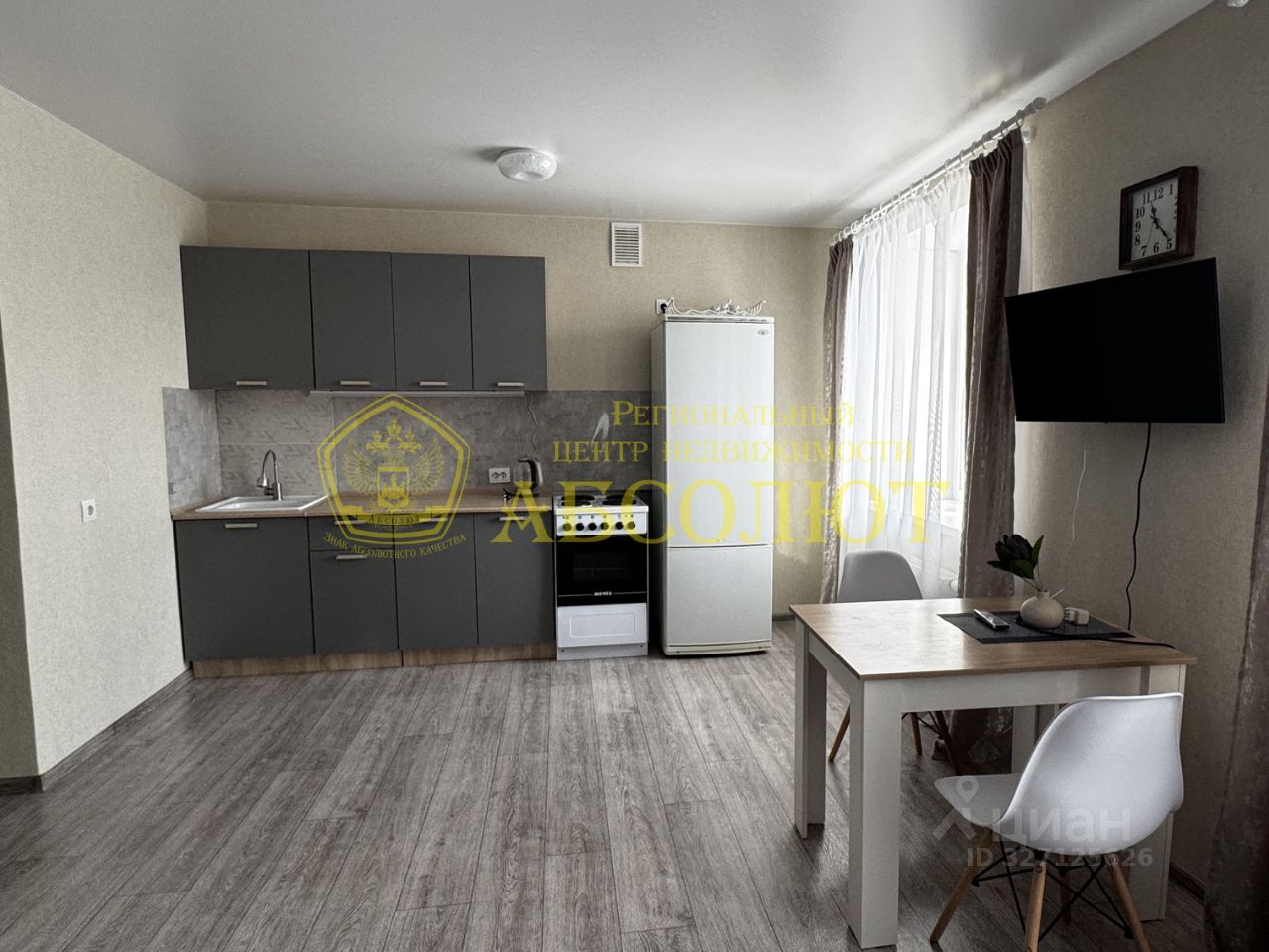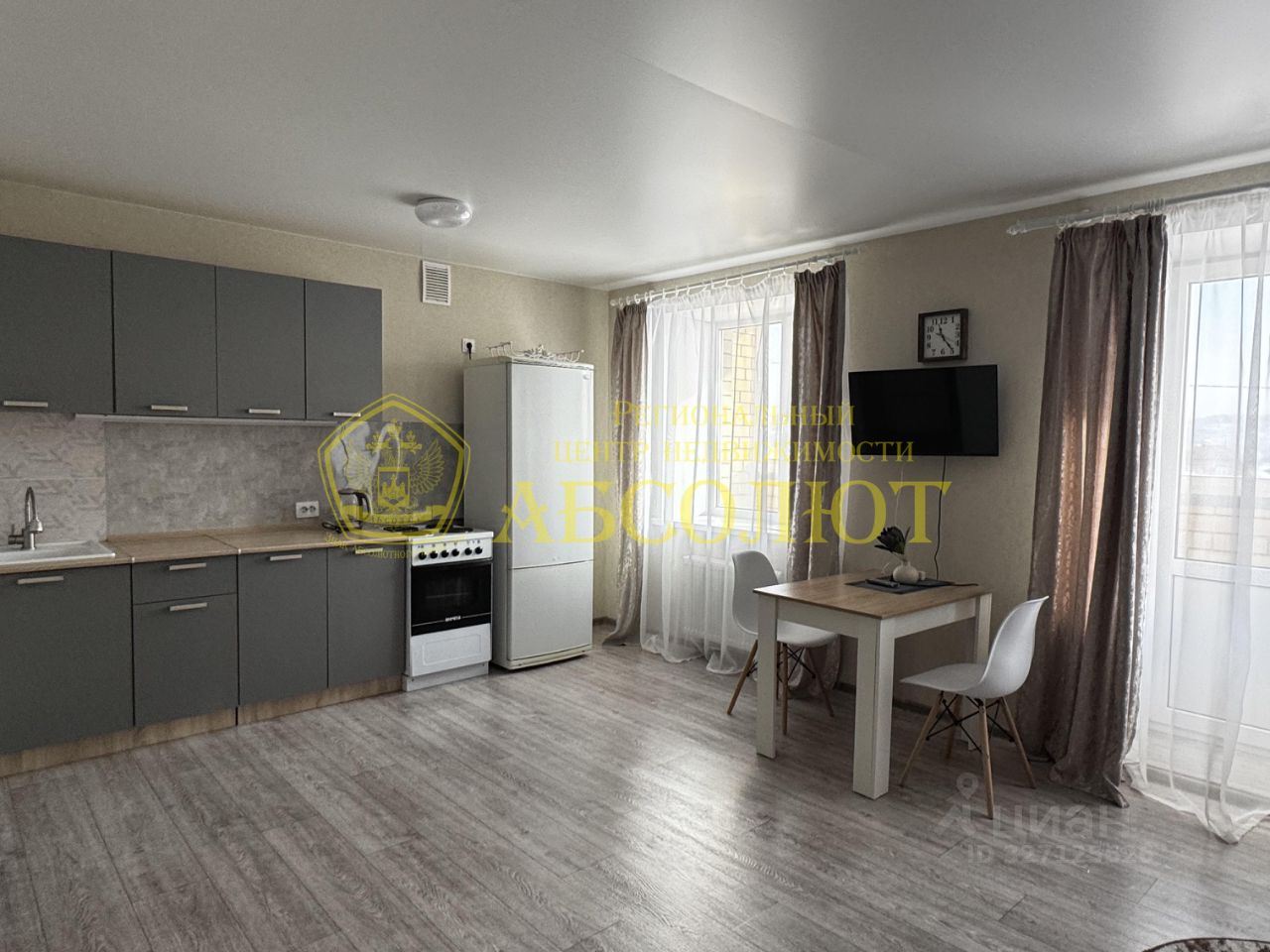 Квартира полностью готова к заезду: сделан хороший ремонт (ламинат, натяжные потолки, плитка), установлена сантехника. Из мебели и техники есть самое необходимое: диван, стол со стульями, кухонный гарнитур, прихожая, холодильник, стиральная машина. Очень светло и чисто.