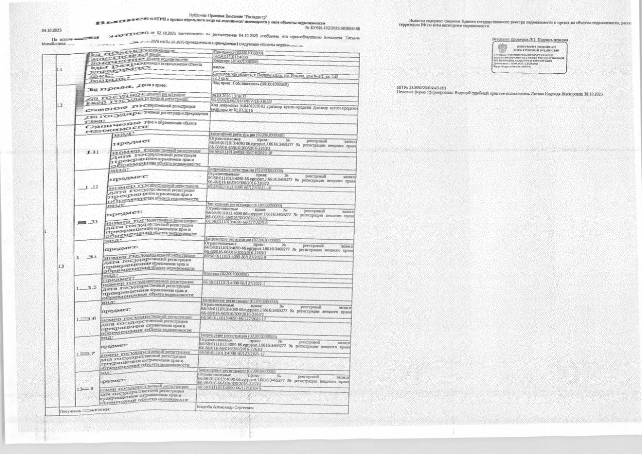 Должник: Кулышева Т.М., собственник: Кулышева (Бочхарева) Т.М. Лот: Жилое помещение (квартира), площадь 22,3 кв.м., кадастровый номер: 66:58:0111013:4090, г. Первоуральск, пр. Ильича, д. 3/2, кв. 140, (зарегистрированные лица - 3 взрослых, 2 несовершеннолетних), н/ц: 1164773,60 р., з-к: 1164 р., код: 0014, рег. 43-3381/25