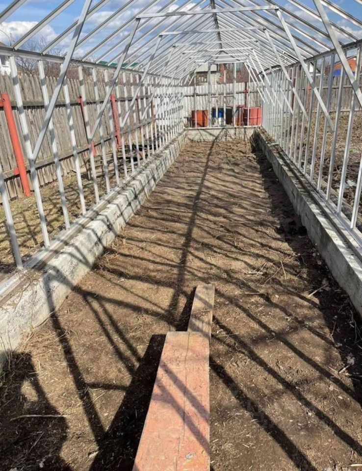 Есть сруб бани 6*3, гараж из пеноблока, фундамент для теплицы 3*12.