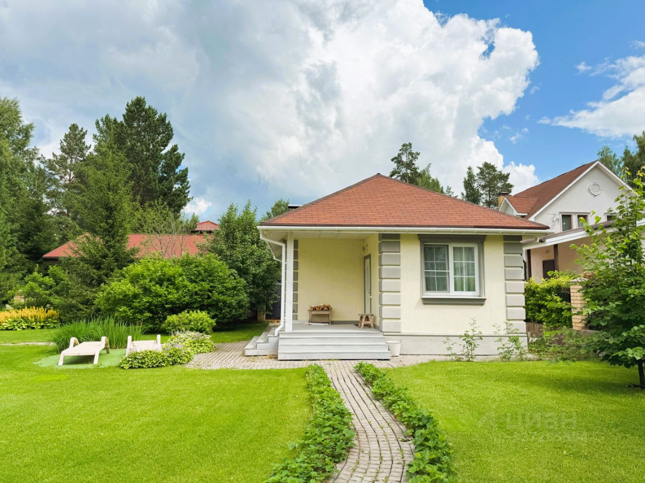 На участке: - гостевой дом 5х8 с баней, комнатой отдыха, кухней, с двумя душевыми, санузлом - территория полностью благоустроена, с организованными зонами отдыха, прогулочными дорожками - автоматические ворота, парковка на 2 машины - ландшафтный дизайн с автополивом - плодово-ягодные деревья и кустарники
